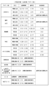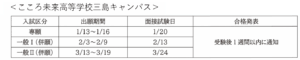 詳しいことは 図<令和8年度 入試日程 サポート校> ※図中のNETコースは、こころ未来高等学校のNETコースです。