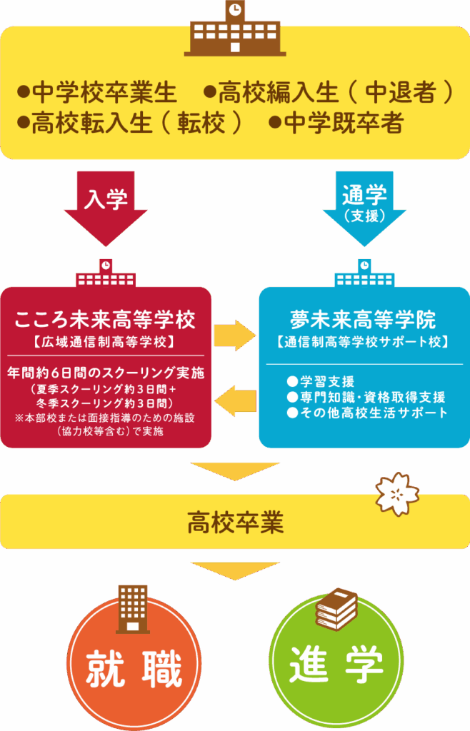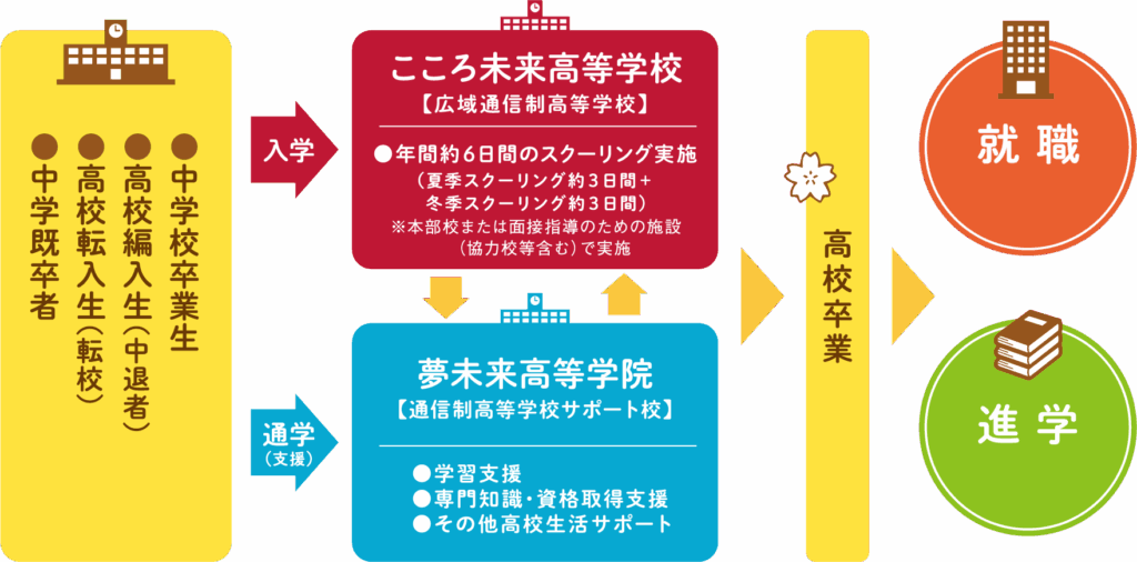 夢未来高等学院(通信制高等学校サポート校)のしくみ